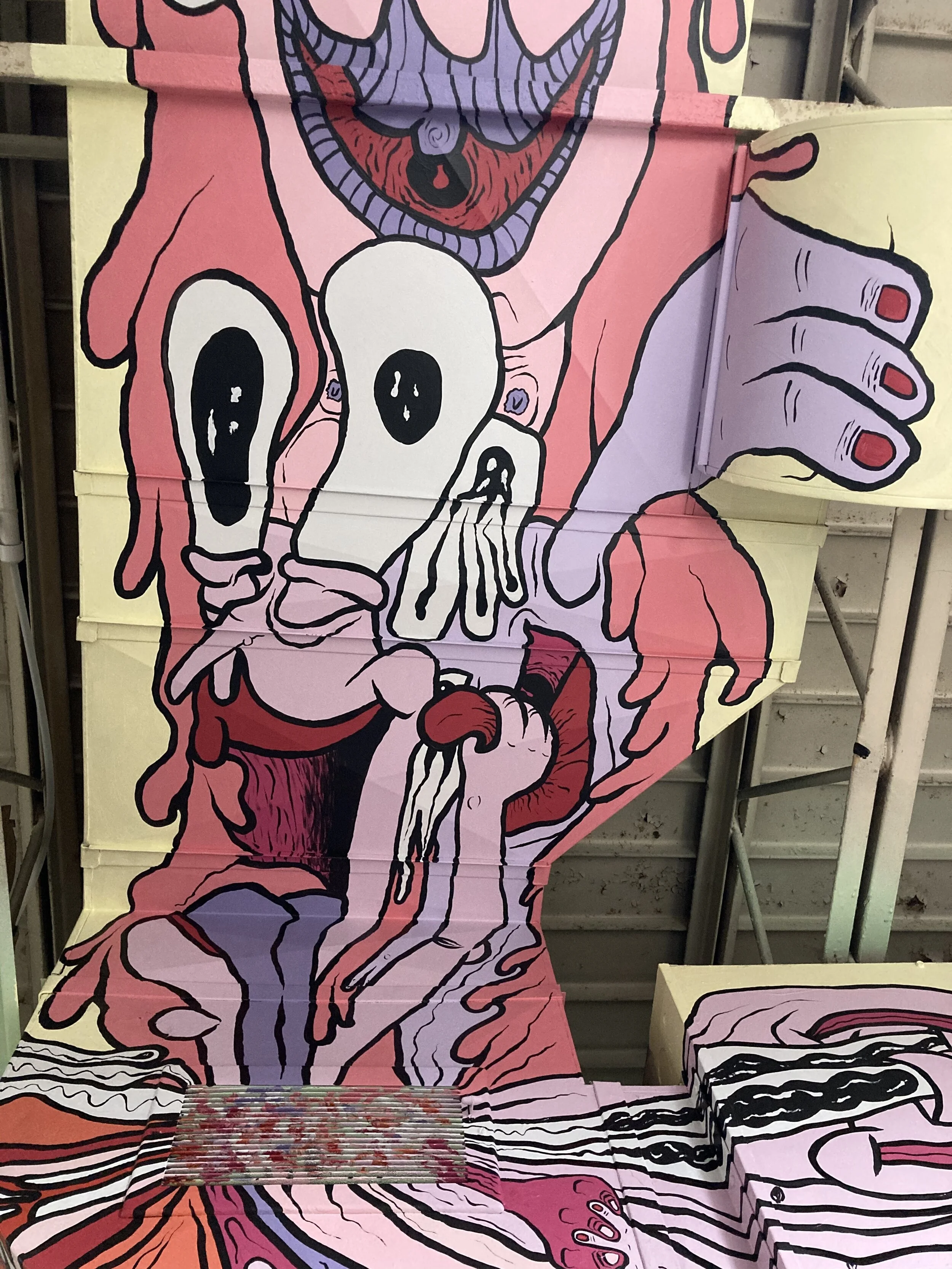 When you place a Loupee, in a place where all he has are 11 pints of paint, paintbrush, and an absurd angled place to paint…he comes up with this. 55 hours upside down will have you reevaluating what matters in life, like how insane it would be to paint the Sistine Chapel. Except I made some funny things trying to figure out the answers to life. Go figure.